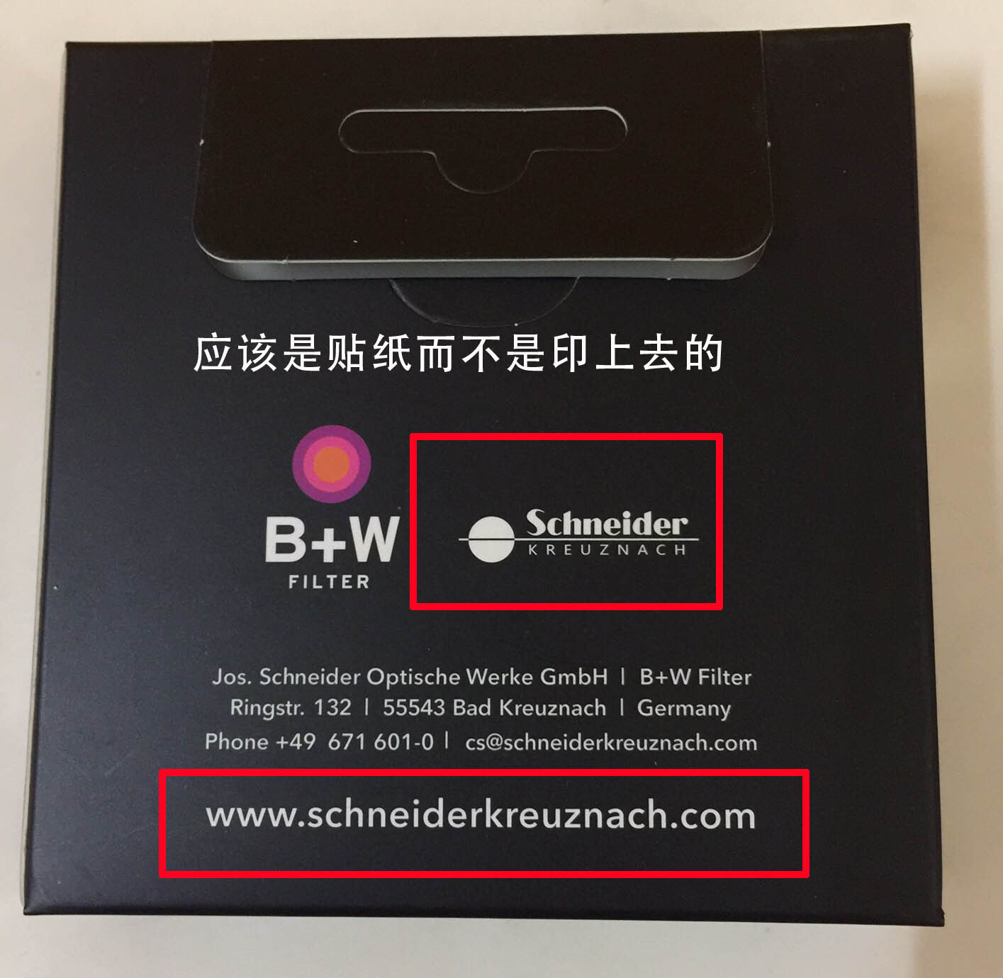 1.包装盒上的B+W 的 B 比较圆润,假货比较长。