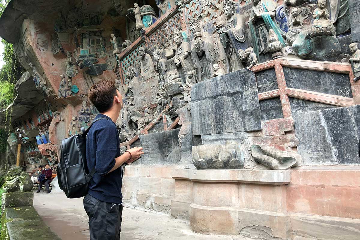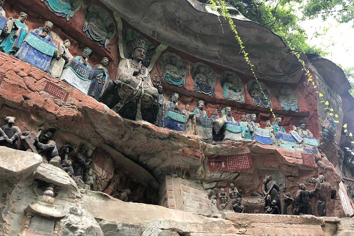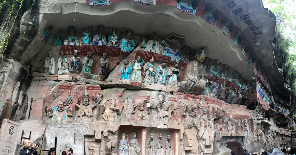 那么,下面就重点讲一下重庆的大足石刻。中国的临崖雕刻的石窟非常多,比如中国四大石窟,还有一些小众的石窟,如:千佛崖等等,而重庆的大足石刻又是另一番的雕刻手法,雕刻精美,题材多样,内涵丰富,绚丽多彩,打破以往佛像单一颜色的石刻,雕刻庄重大气、栩栩如生。