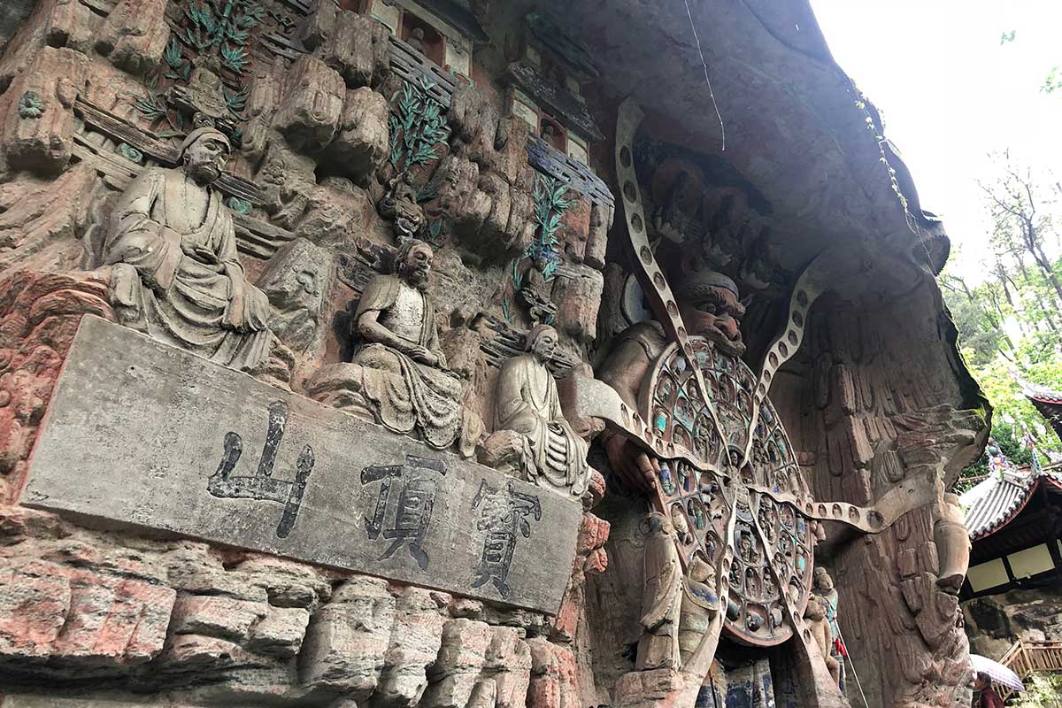 宝顶山石刻以六道轮回,广大宝楼阁、华严三圣像、千手观音像最值得一看。不过这里需要导游的讲解,没有导游我们真的是走马观花也没有了乐趣,顺带提一下,团购的话导游是免费的。这些雕刻非常华丽,颜色特别鲜艳,1000多年来岁经过多次修缮,但仍能看到当时临崖雕刻的繁荣景象。