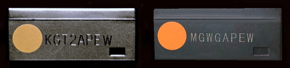 5.电池尾部橙色标志旁边的数字是镭射雕刻,而不是印在电池上也不是和电池塑料融为一体的。并且最后一个字母对应的在「小方框」上方