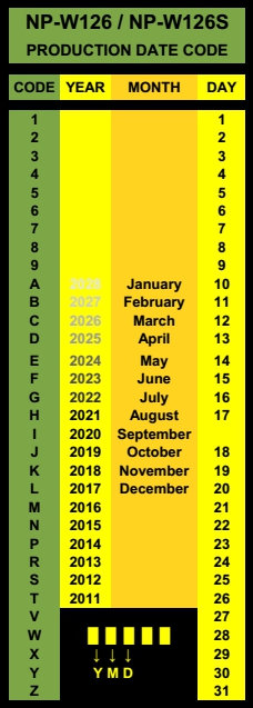 7. NP-W126S 中的 6 对应的是上面字母 Y,S 则是空出来,假货电池,S 对应的可能是上面的 Y。