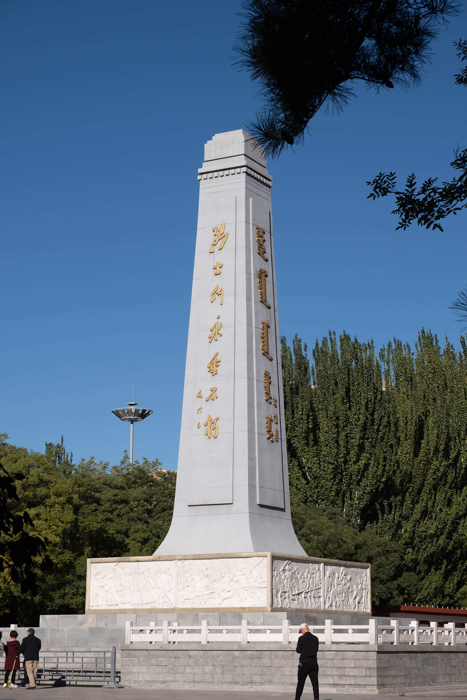 青城公园还有一处看点就是「纪念碑」。这块纪念碑是「烈士们永垂不朽」,毛主席题字。所以说青城公园也是一座爱国主义教育基地的公园。
