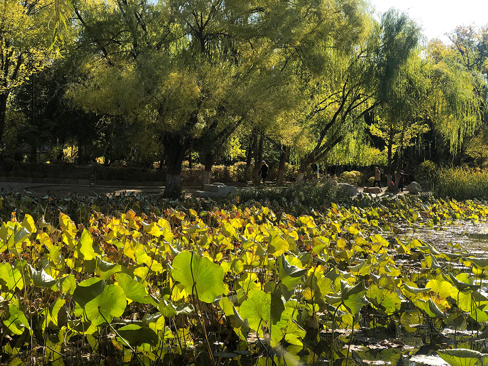 内蒙古的秋天,蓝天多于多云,背阴冷飕飕,向阳暖洋洋,青城公园占地面积很大,里面有至少4个大小不一的池塘,至少有3座桥梁,还有至少5个小型广场,3处游乐场还有各种亭子,深受当地人的喜爱。