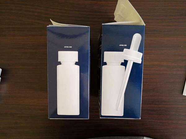 3、盒子侧边有瓶子和滴管,假货没有滴管