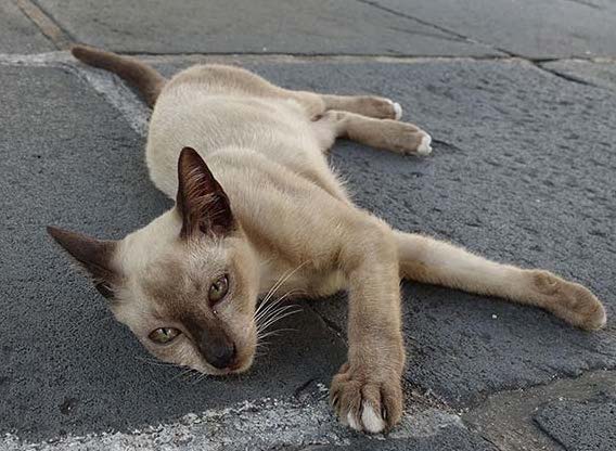 我喜欢猫,大街上遇到的猫不计其数,都会嘴里“滋滋”的吸引它们,通常情况下,它们都在懒洋洋的散步,不是在车底下就是在树荫或者在商店门口趴着。