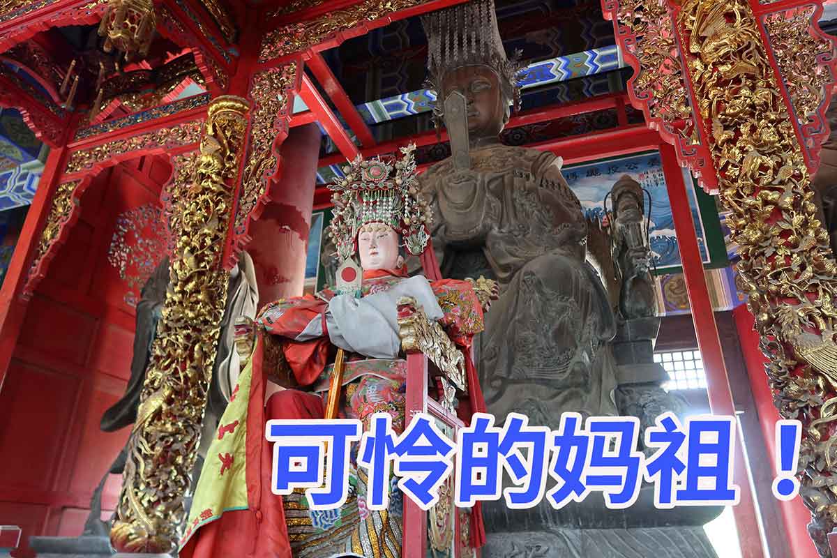 这座天后宫已经荒废,建议拿红盖头盖住妈祖的头部,请回湄洲岛吧!