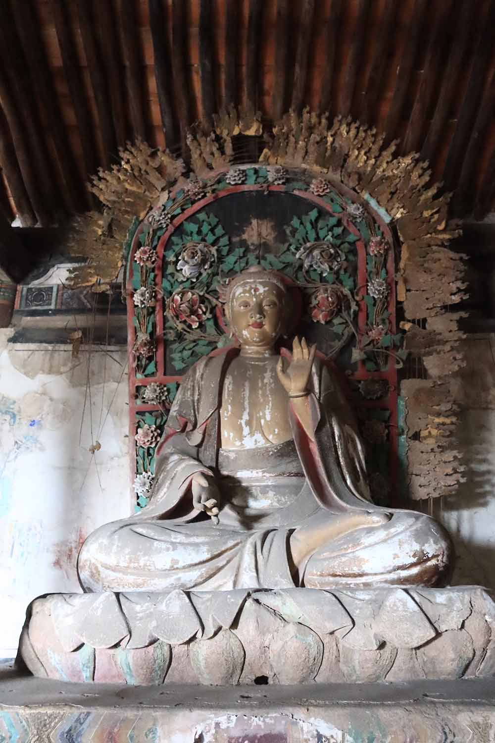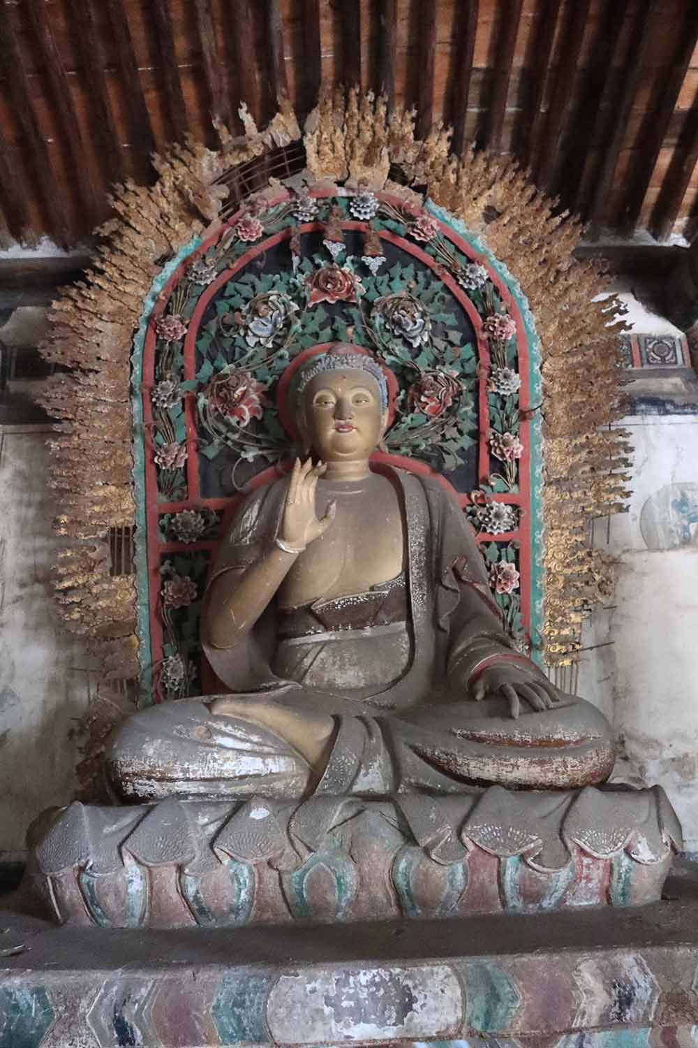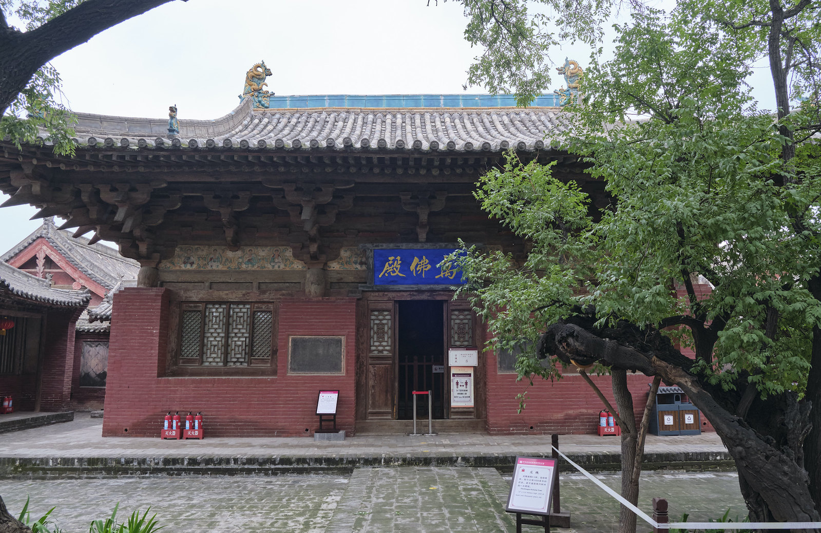 镇国寺中最重要的建筑是万佛殿,由殿顶屋脊梁下的题记可知,肇建于963年(五代晚唐),主要看建筑本身的斗拱、柱头铺作等,对于喜爱建筑学的朋友可以仔细研究一番,这里不多细说。为何叫做万佛殿,因为金代重修万佛殿的时候,在四周的墙壁上绘了许多的佛像,故而取名万佛殿。