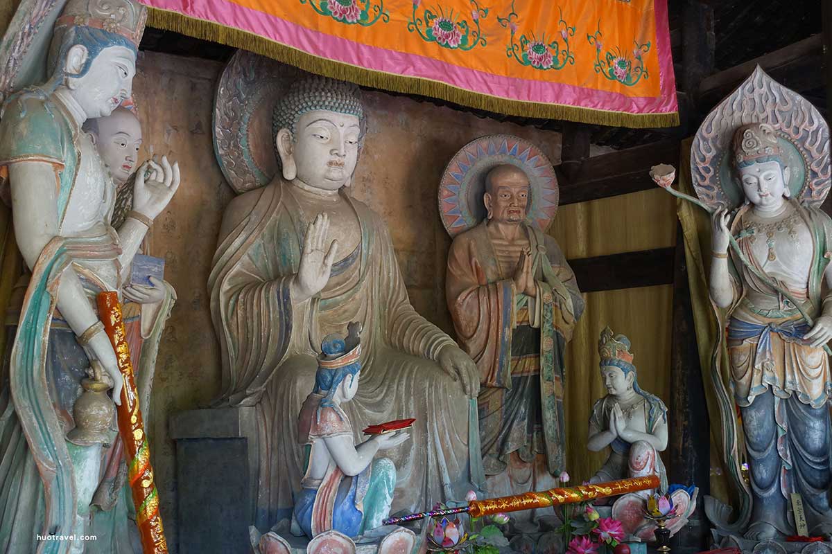 进门便看到已经毁掉的大云寺遗址这很有名的,很多信徒都会在这里烧高香,这间大殿是后来翻修的,之前文革时期被破坏严重,殿内禁止拍照,旁边就是金牛道,这都是公元前316年的事情了。大云寺里面供奉着现在佛:释迦摩尼像,就是我们所说的如来佛祖。