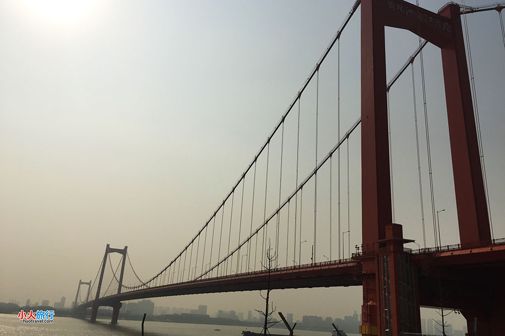 我订的是10点28分开往郑州的火车。现在才9点多一点,于是我在黄鹤楼公园门前阅马场站坐着411路公交车驰骋在长江大桥上,1站的时间在长江大桥汉阳桥头下,就来到了长江大桥。很气派的大桥,已有百年历史,稍远处是一座钢铁红色大桥,横穿两岸,原来是鹦鹉洲大桥。