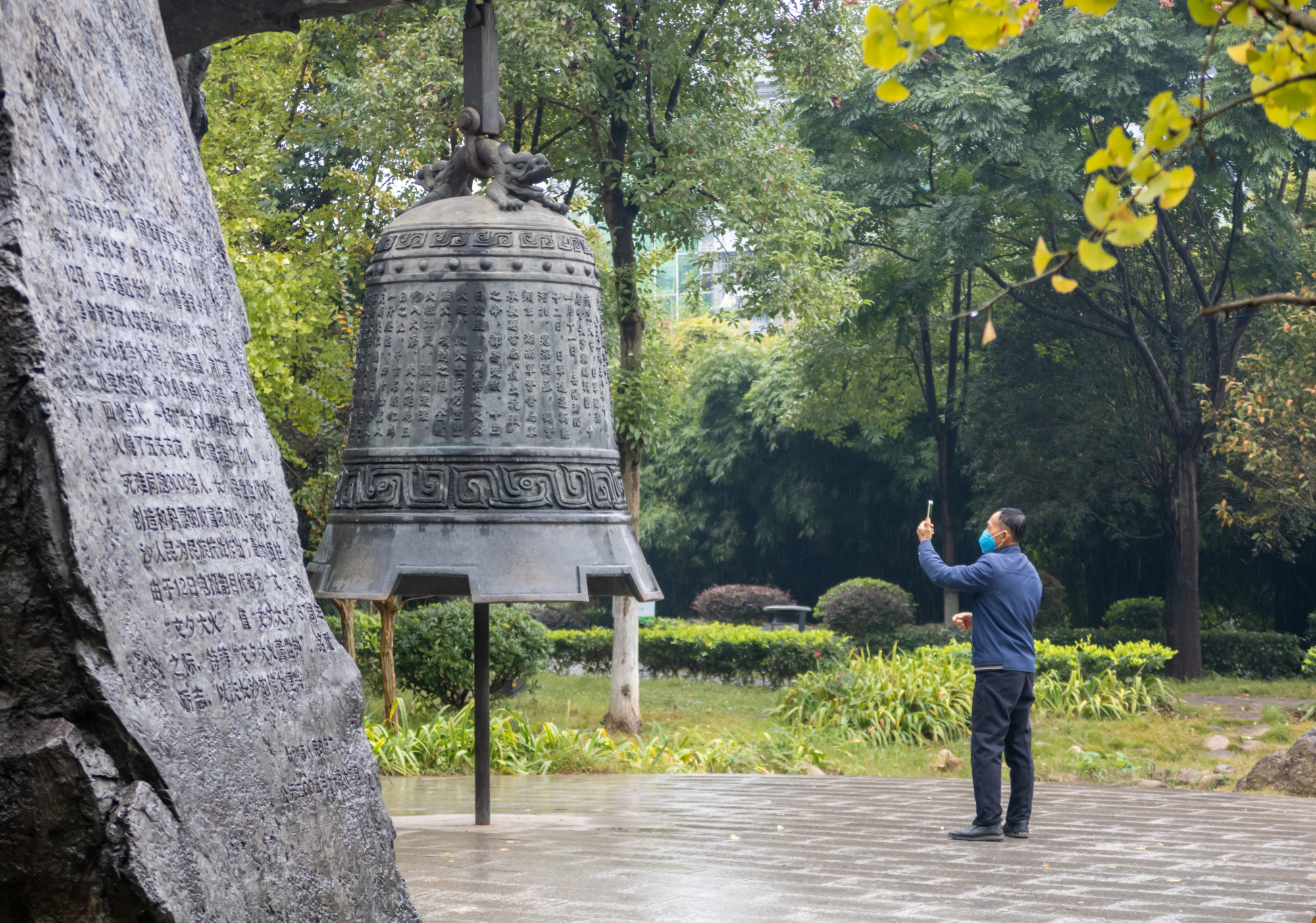 西厢公园很小,只有“巴掌大”,一眼便可及,目光所到之处,有泛黄的银杏树,还未红透的红枫,70年的紫薇树,还有一座警世钟,“麻雀虽小,五脏俱全”,西厢公园内的秋意正浓,各种颜色混合在一起,像画师打翻了手中的颜料,洋洋洒洒的落在大地上。