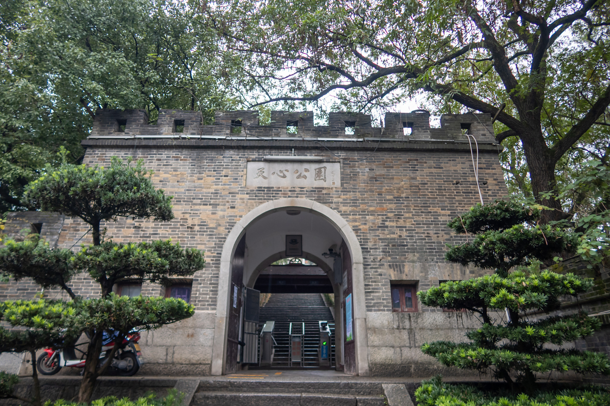 从大门进去,便是天心公园。天心公园的建造年代很久远,始建于1924年,里面除了亭台楼阁,《太平军魂》巨型群雕以外,还有一栋知名的楼阁,就是天心阁,天心阁还是中国八大名楼之一,不过很多人不晓得罢了。