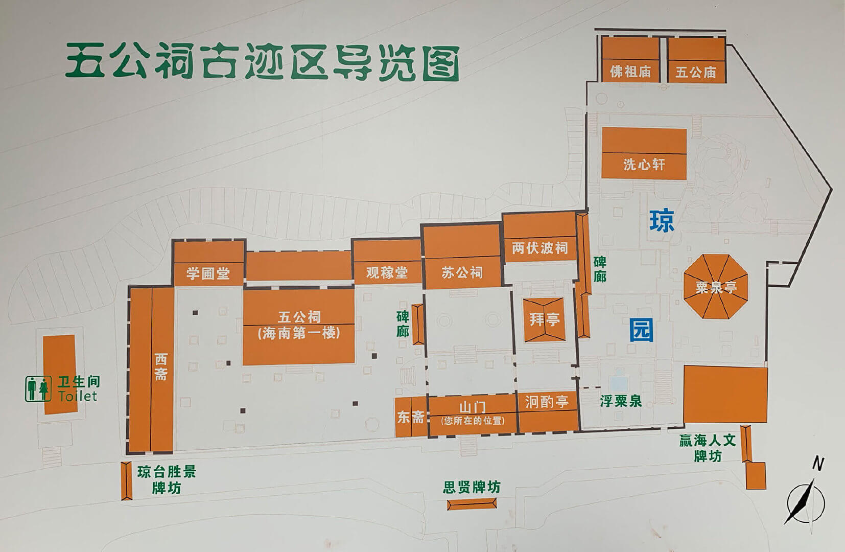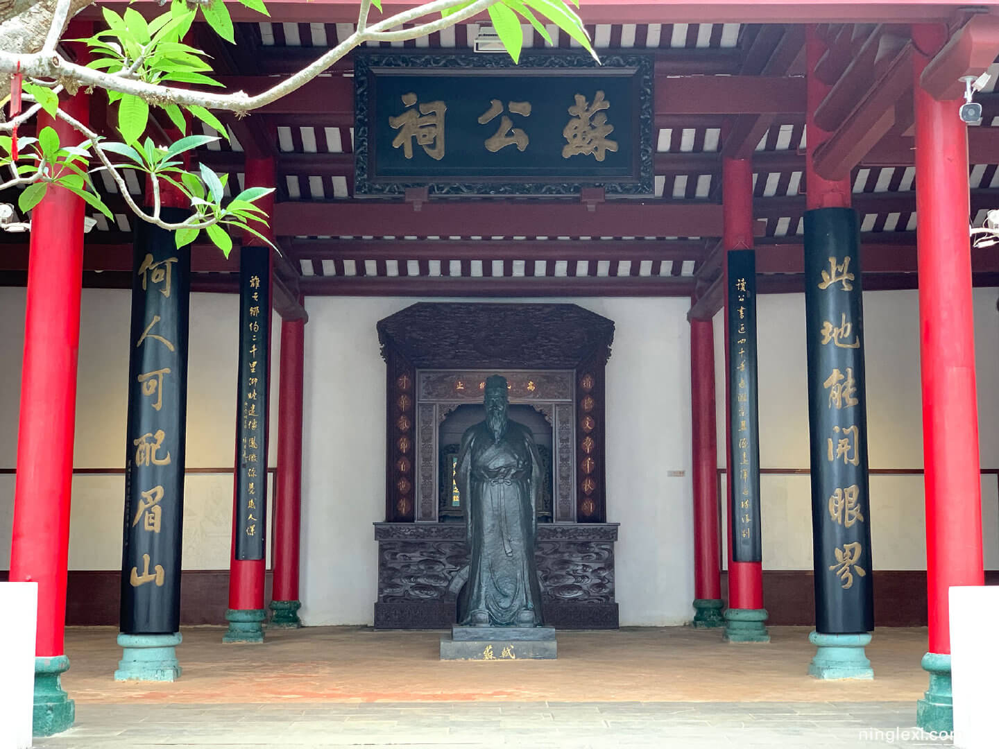 蘇公祠是為紀念蘇東坡而建,该楼始建于清光绪十五年(公元1889年),是为纪念唐宋两代被贬谪来琼的李德裕(唐朝宰相)、李纲和赵鼎(均为宋朝宰相)、李光和胡铨(均为宋朝的大学士)五位历史名臣而建的,由于人们景仰先贤“五公”而得名。