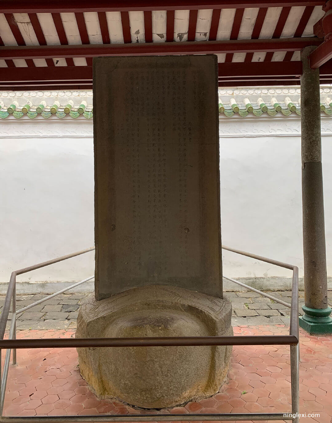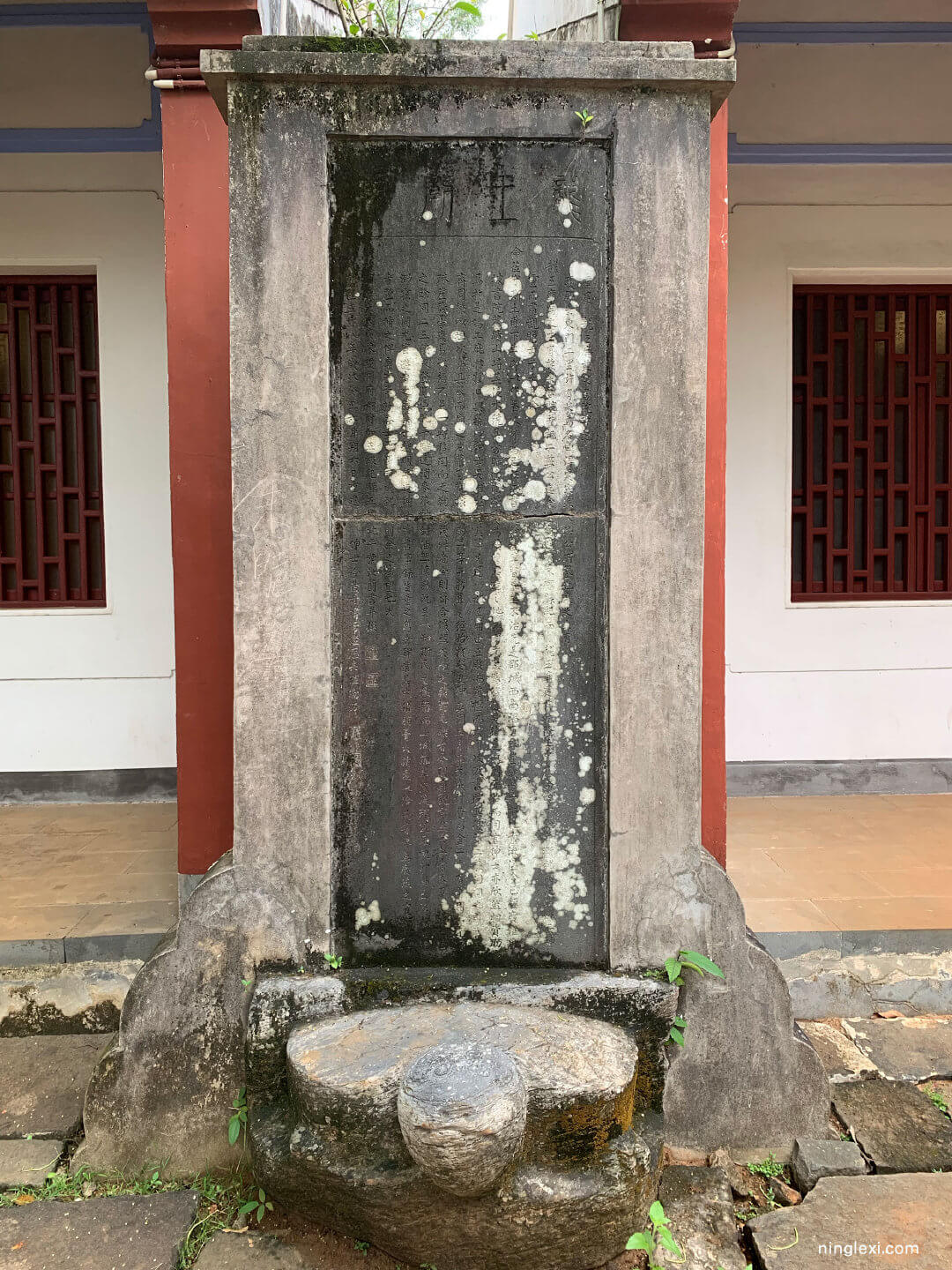院子里还有一块字迹比较模糊的石碑,名字叫「龙王庙」,看文字描述是乾隆时代雕刻,是为了纪念重建苏泉书院而刻的,但是五公祠官方没有给予介绍,我在海南史志网找到这部分资料,「碑高2.2米,宽0.7米,原底座已失,1985年修复时加一大石为底座,碑首阴刻隶书“龙王庙碑”,每字约0.1米见方。」碑文可以点击这里查看:海南史志网:碑记题刻中间部分