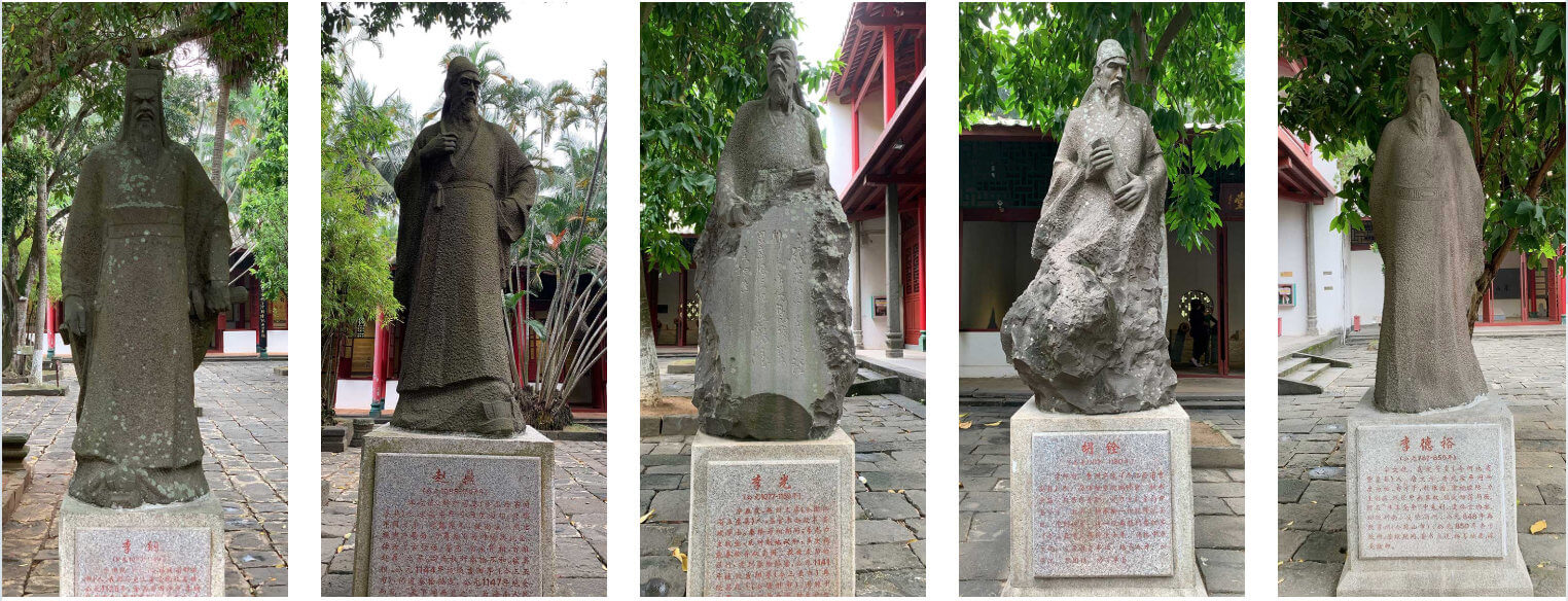 上图为五公祠的五公,依次为:宋朝宰相李綱、趙鼎及大學士李光、胡銓、宰相李德裕