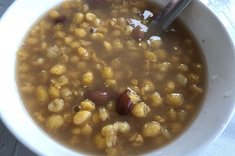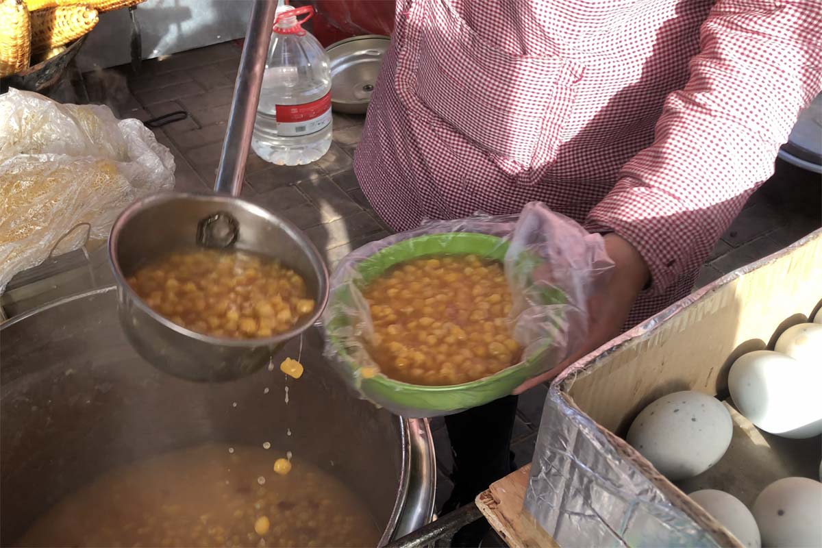 转了好几个市场,只遇到这一家卖玉米大碴子粥的,哦,不,应该叫玉米粒粥。